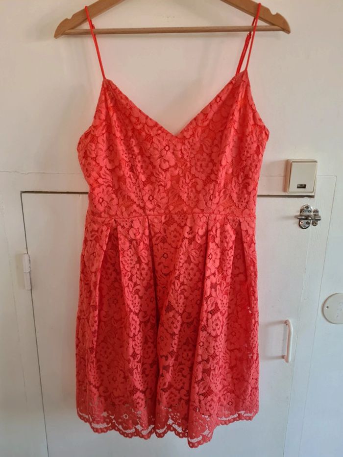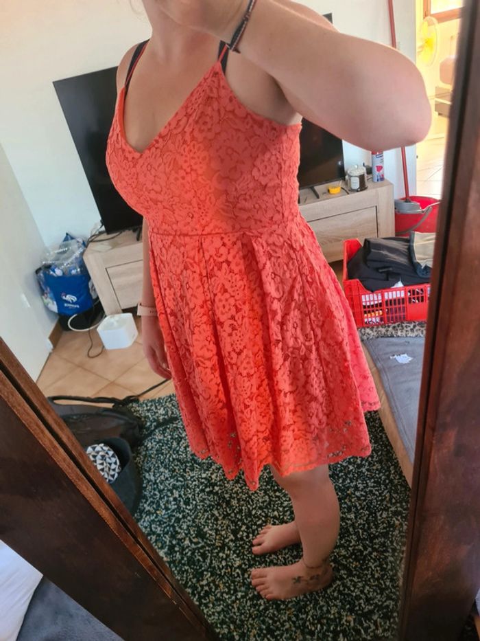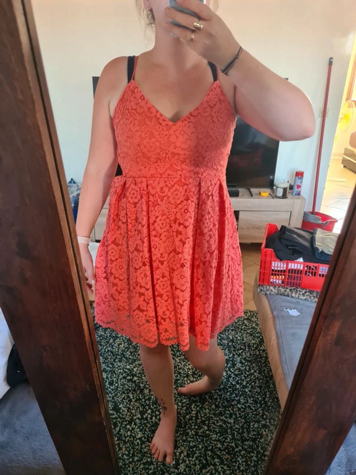 Très jolie robe couleur orange assez flash n'est pas tout à fait la même couleur que sur la photo. bretelles réglables, quelques fils. Attention ne convient pas aux grosses poitrines, juste pour moi qui fait du 100C. Marque H&M, taille 40. #chtitealice #chtitealice_taille40 #H&M #robeete #robe