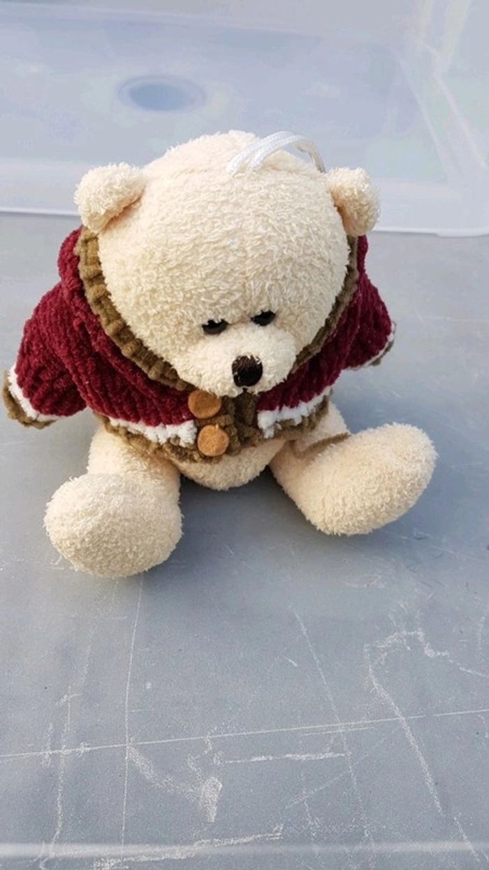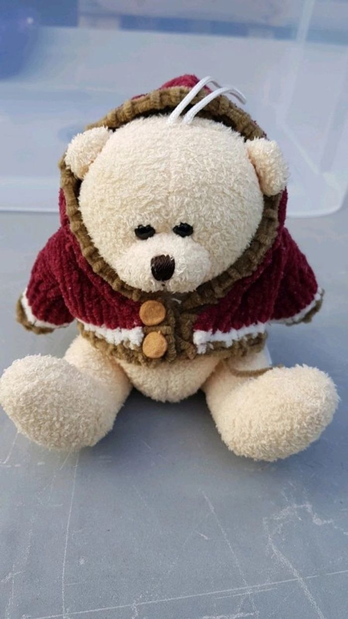 Petit ours en peluche avec gilet à capuche Possibilité de le suspendre 12 cm #peluchecenatco