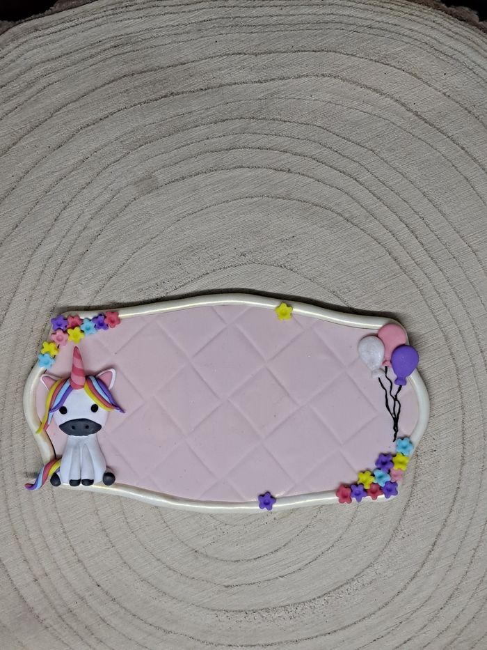 Plaque deporte réalisée en argile polymère sur le thème licorne A personnaliser avec le prénom de votre choix Vous pouvez également choisir la couleur du prénom si vous le souhaitez Taille : 14 cm de long, 7.5cm de haut Si vous désirez un autre thème n'hésitez pas à me contacter 😉