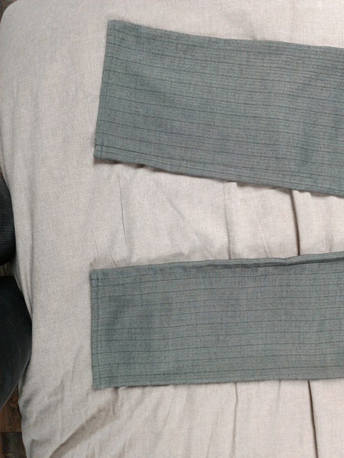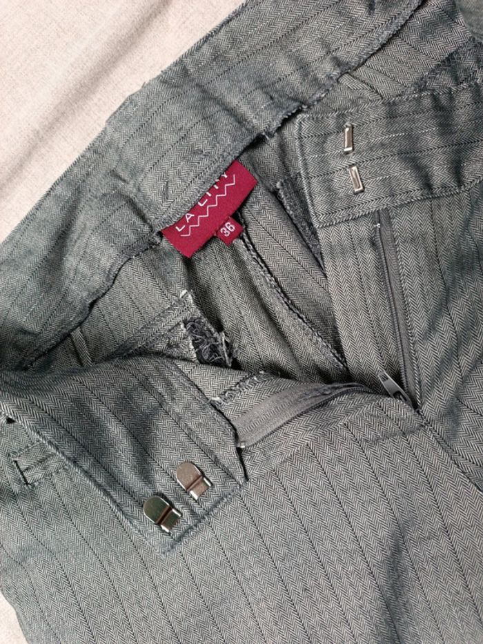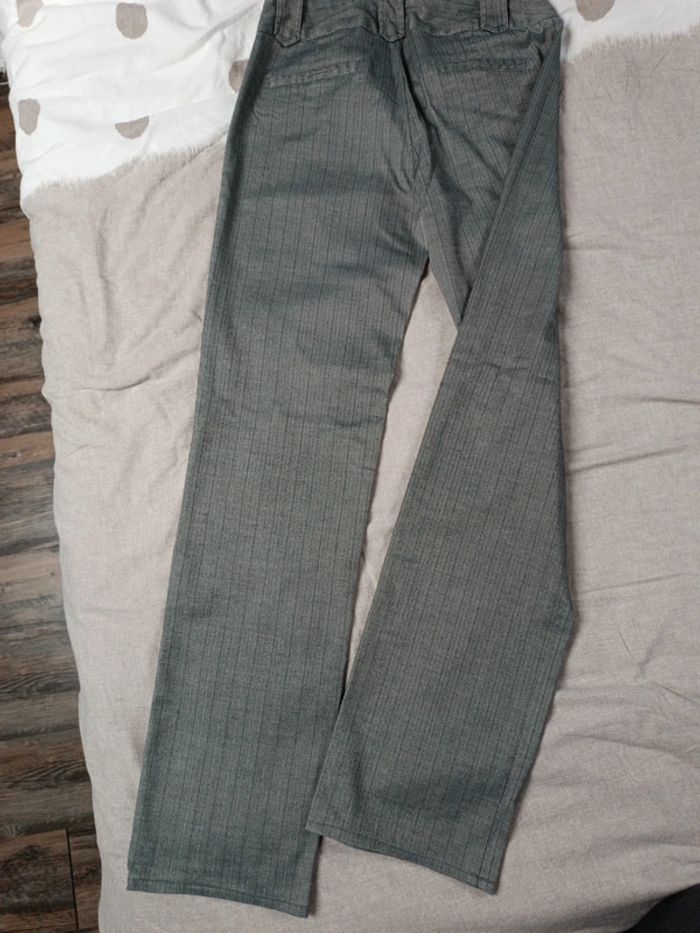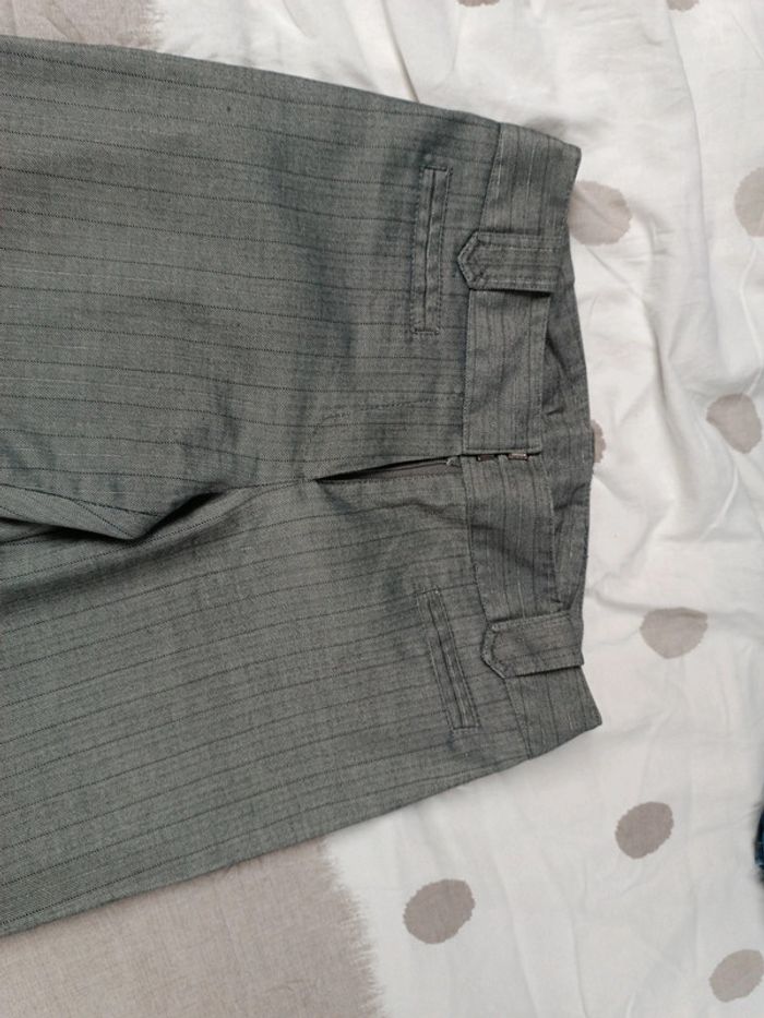 Pantalon droit plutôt fin style habillé Petits chevrons gris et noir avec des rayures fines Très bon état taille 36