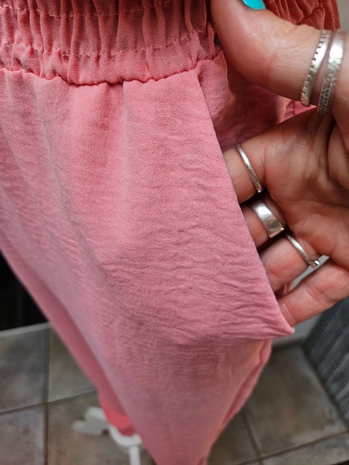 En très bon état portée juste 1 fois. Juste minuscule tache que je viens de remarquer près de la poche droite visible sur phoho. Taille élastique et facilement extensible facilement pour un L également. Quelques dimensions possible sont sur les photos