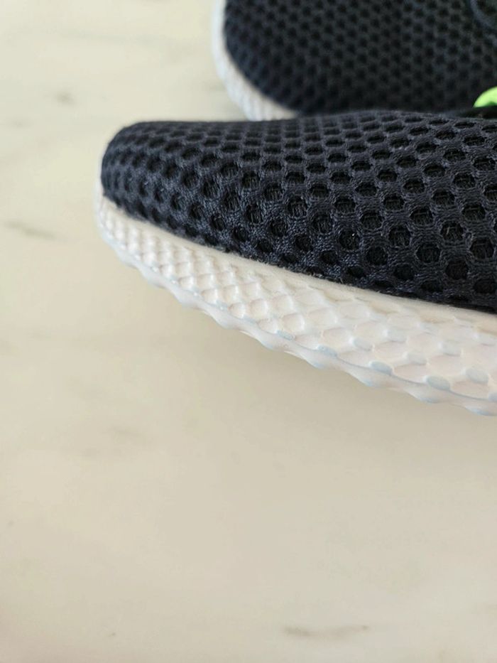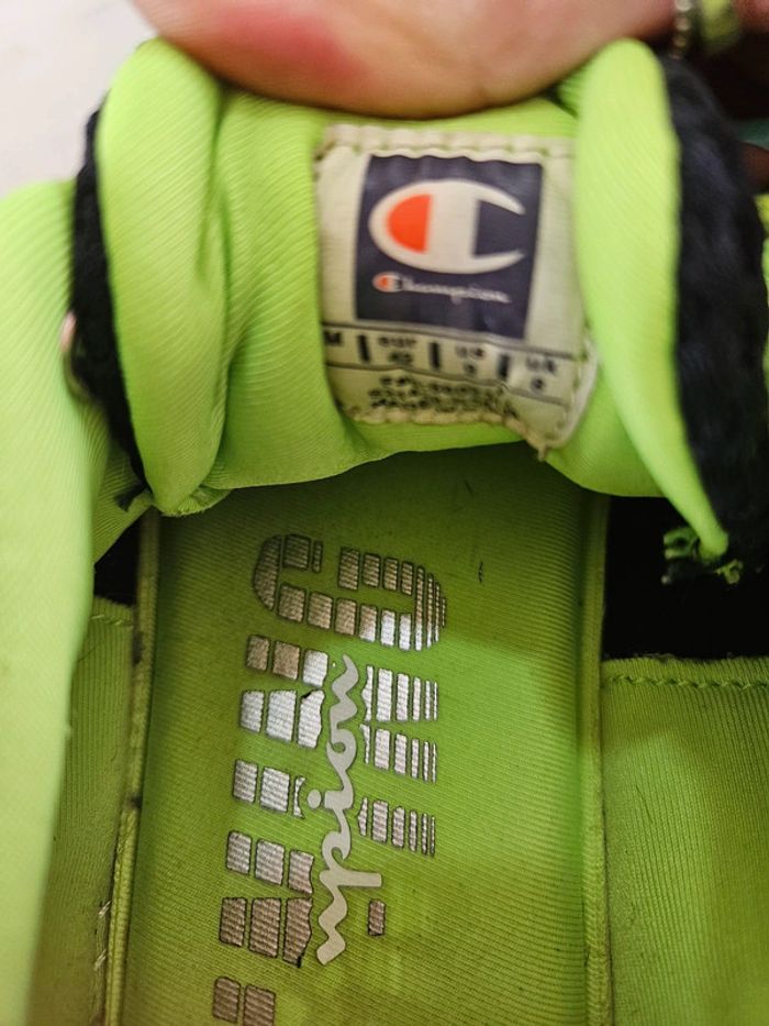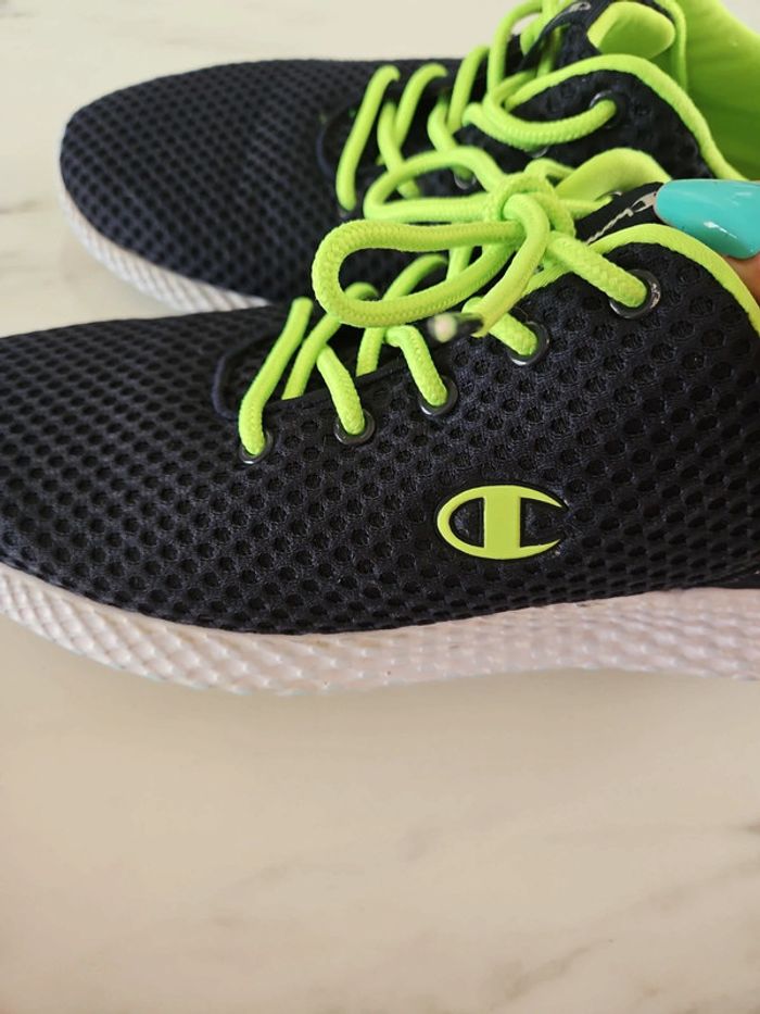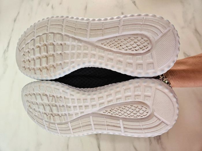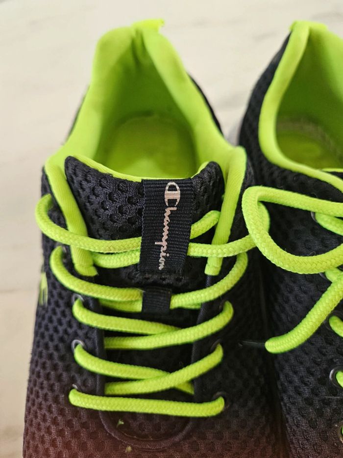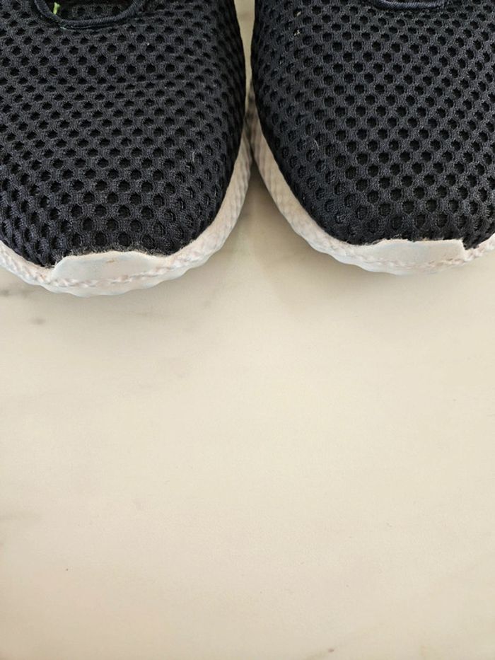 Bleu marine blanche et verte flash. Portée mais reste en très bon état. Juste la semelle intérieure ou la marque s'est effacée et le blanc qui est légèrement bleuté. Visible sur photos Elles sont légères et confortables.