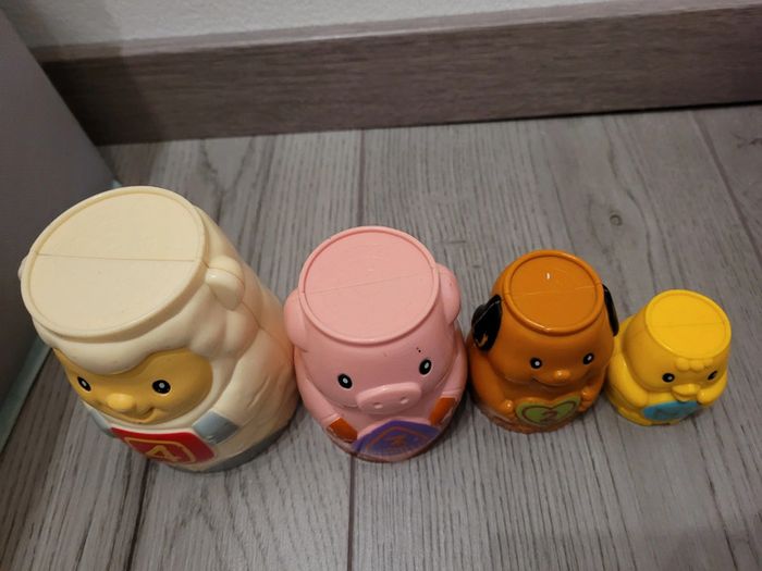 Tasses à empilées animaux avec chiffres de 1 à 4. Bon état, traces d'usures. #amandine38480jouetspeluches