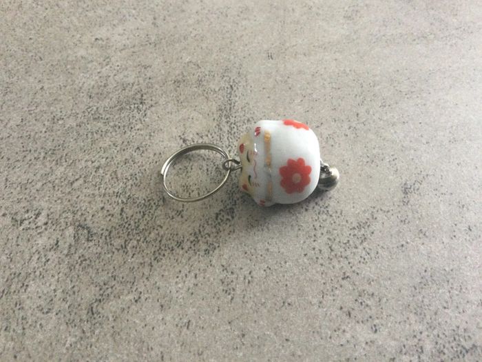 Porte-clés porte bonheur petit chat japonais avec breloque grelot