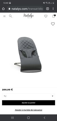 Vend transat Babybjorn bliss gris anthracite acheté neuf 200€ chez Natalys en 2019. Très bon état, aucune tâche, aucun accroc, 3 niveaux d'assise.