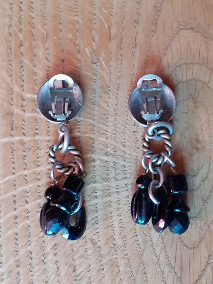 systeme clip boucles argentés type Agatha pendentifs finis avec des perles noires modéle des années 90 #Misspoulette2bijoux #bouclesdoreillesnoires #clips #agatha #années90 #nineties