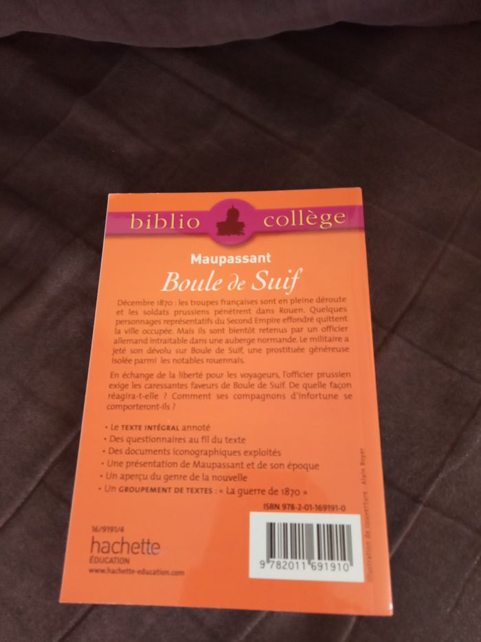 Livre "Boule de Suif" de Maupassant Biblio Collège Des éditions Hachette 143 pages de lecture En très bon état de lecture, comme Neuf