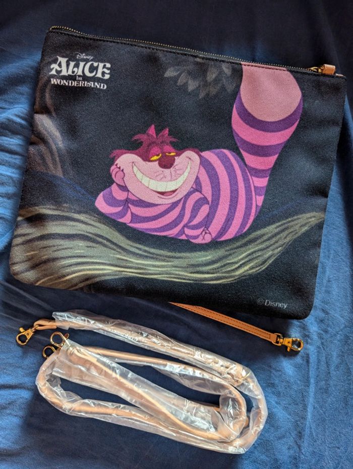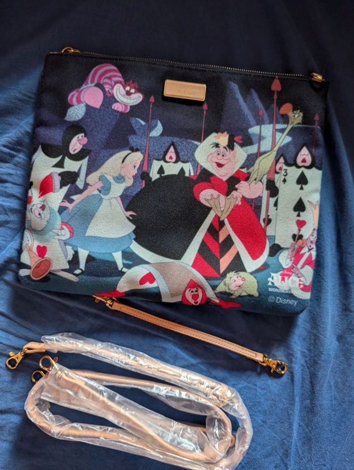 Samantha Thavasa Petit Choice Disney Collection Alice au pays des merveilles Grande pochette Présentation du pays des cartes et du chat de Cheshire Une série présentant des scènes mémorables du film et un imprimé par transfert intégral ! Il s'agit d'un article réversible avec des imprimés différents sur le devant et le dos, de sorte que chaque côté peut être utilisé comme point focal. La bandoulière et la dragonne incluses sont en cuir synthétique, ce qui lui confère un look décontracté. Taille: H 27cm x L 33cm Import USA, rare Haute qualité Neuf sans étiquette mais il n'a jamais servis juste exposé. Les sangles sont encore emballées.