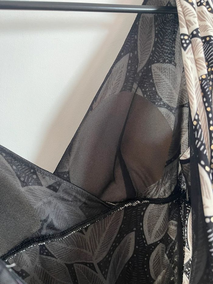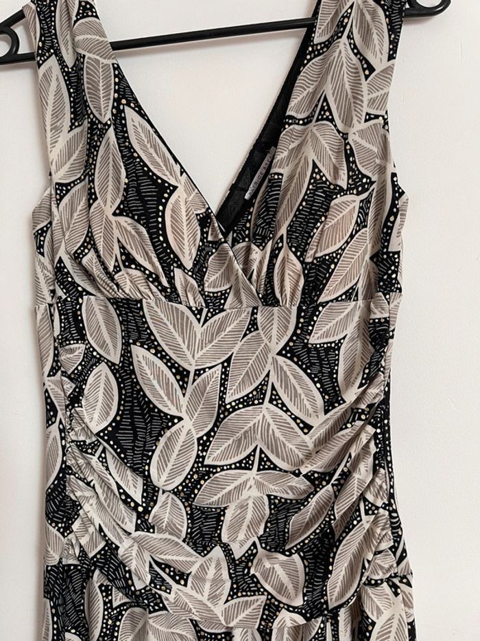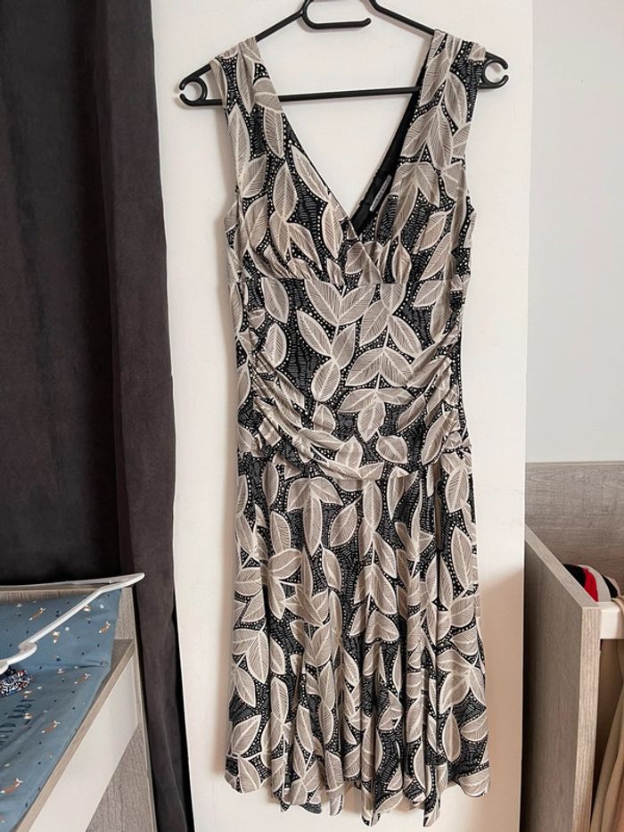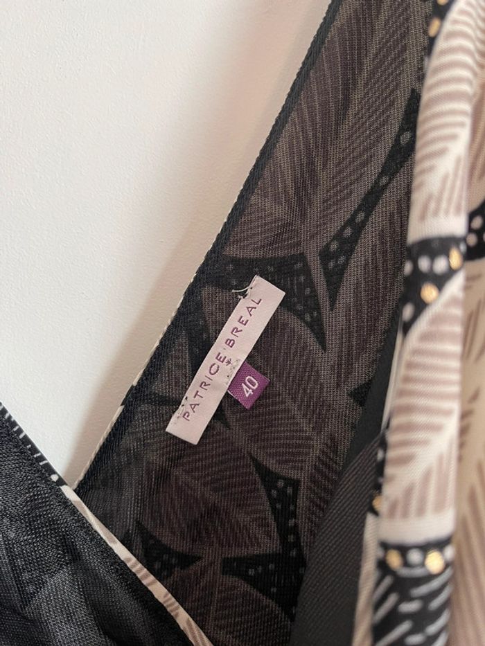Robe Patrice breal Taille 40 Petites coques à la poitrine Pois doré Fond noir Feuilles beige