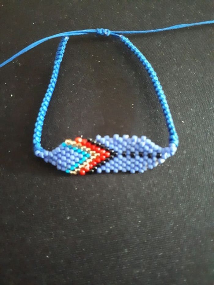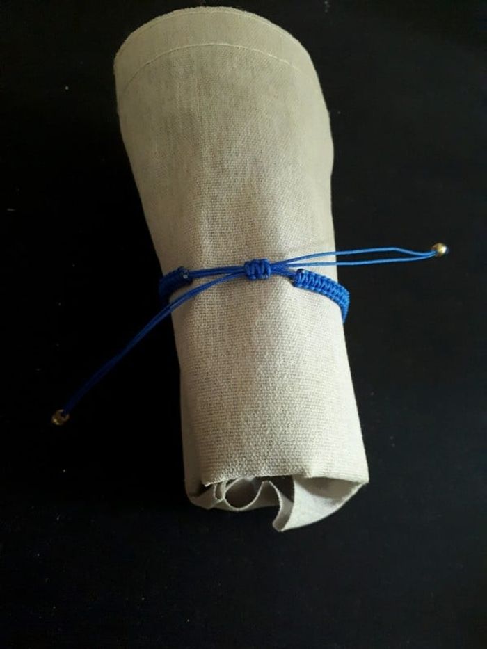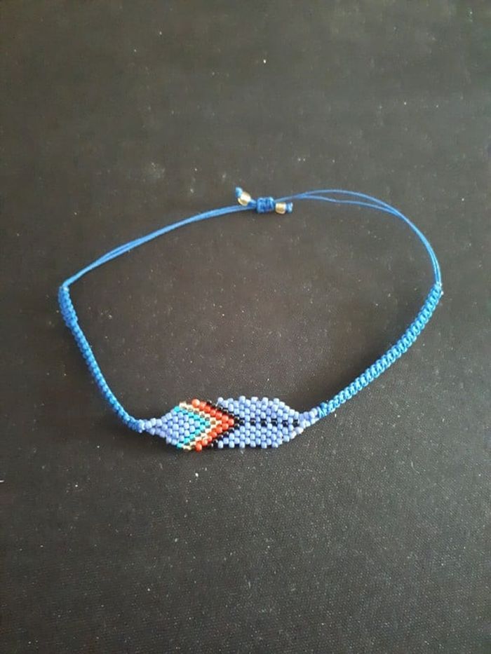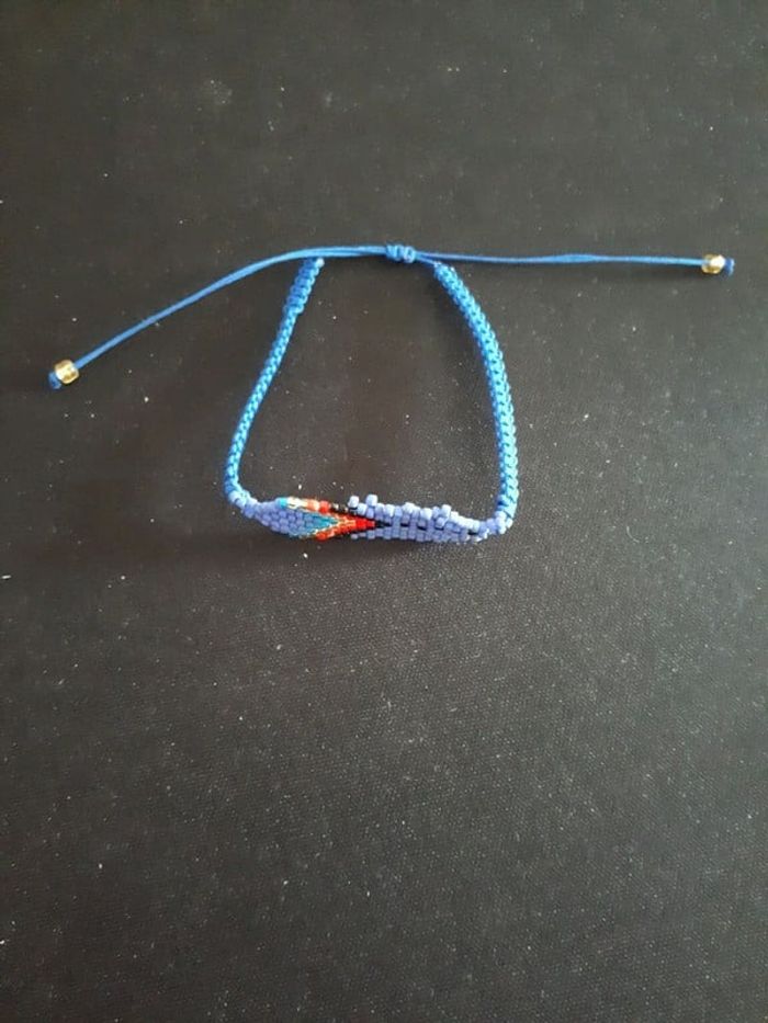 Bracelet fin pour femme Réglable avec les cordelettes Matières tissus et perles Couleurs doré, bleu, rouge, noir et violet Dimensions 6cm de diamètre au plus petit et 11cm au plus large En très bon état