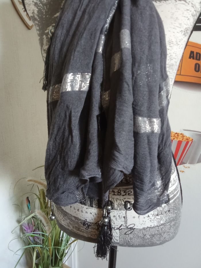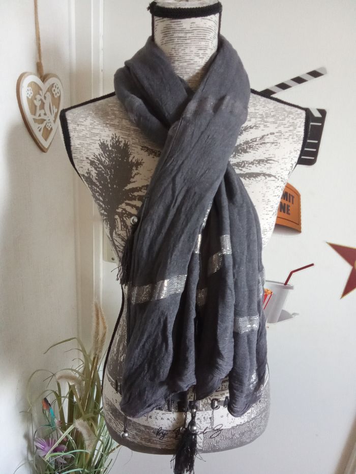 Foulard, écharpe , étole femme gris, blanc taille unique