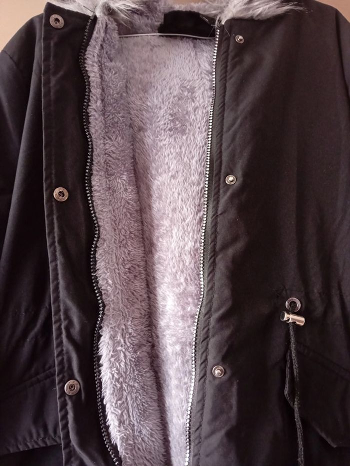 MANTEAU noir 3/4 molletonné fourrure taille XL