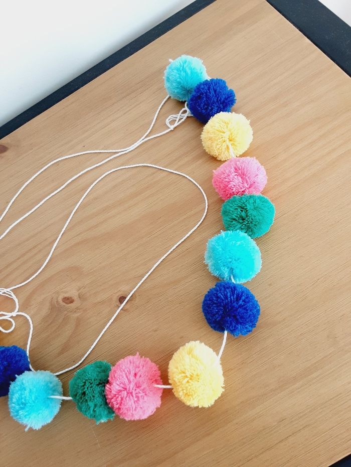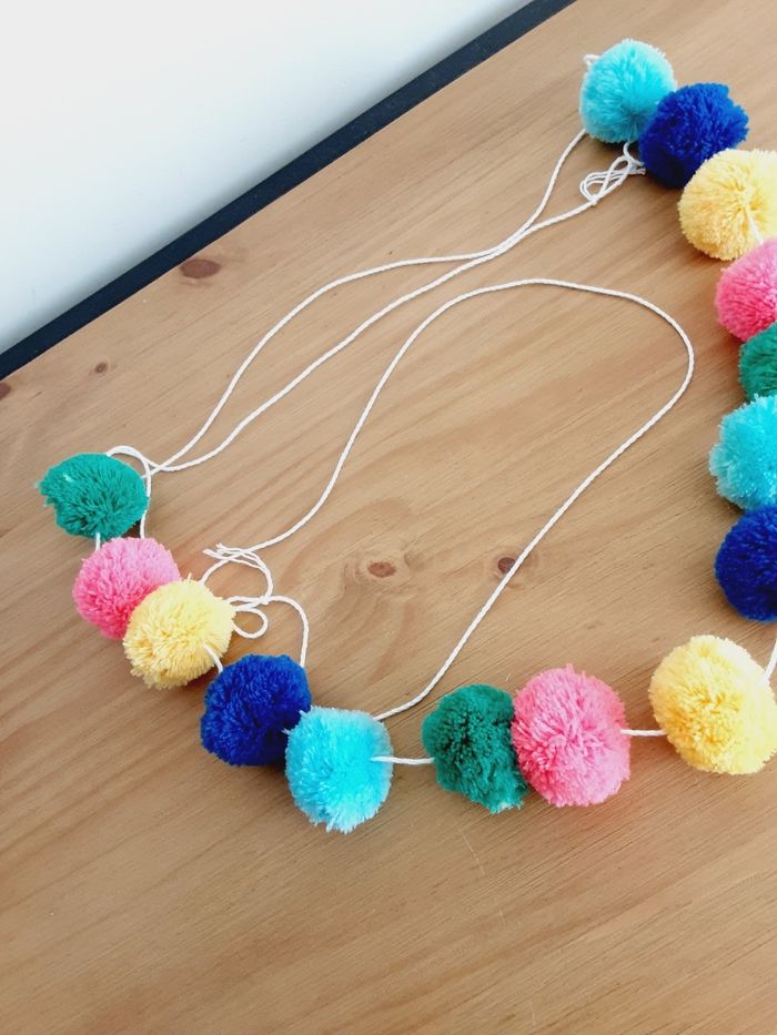 Les pompons peuvent glisser le long de la ficelle donc la distance entre est réglable selon l'envie
