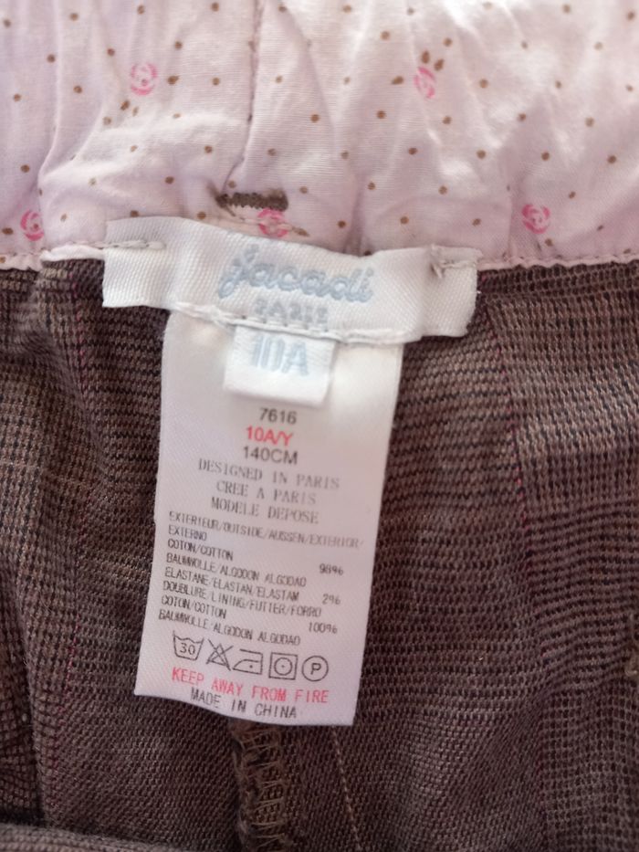 Pantacourt jacadi 10 ans. Porté mais reste en bon état pas de tâches pas de trous, fermeture nickel, élastique interieure et boutons pour resserrer au besoin non utilisés et en TBE