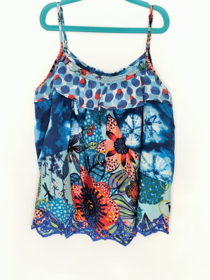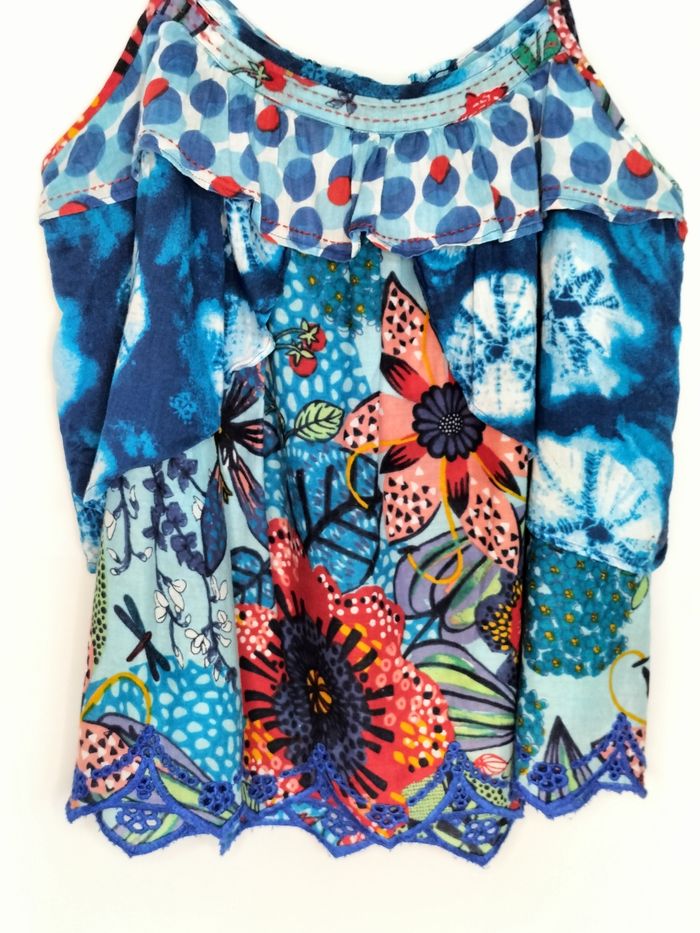 Débardeur Catimini à fines bretelles réglables. Volanté, et brodé sur le bas. Taille 12 ans.