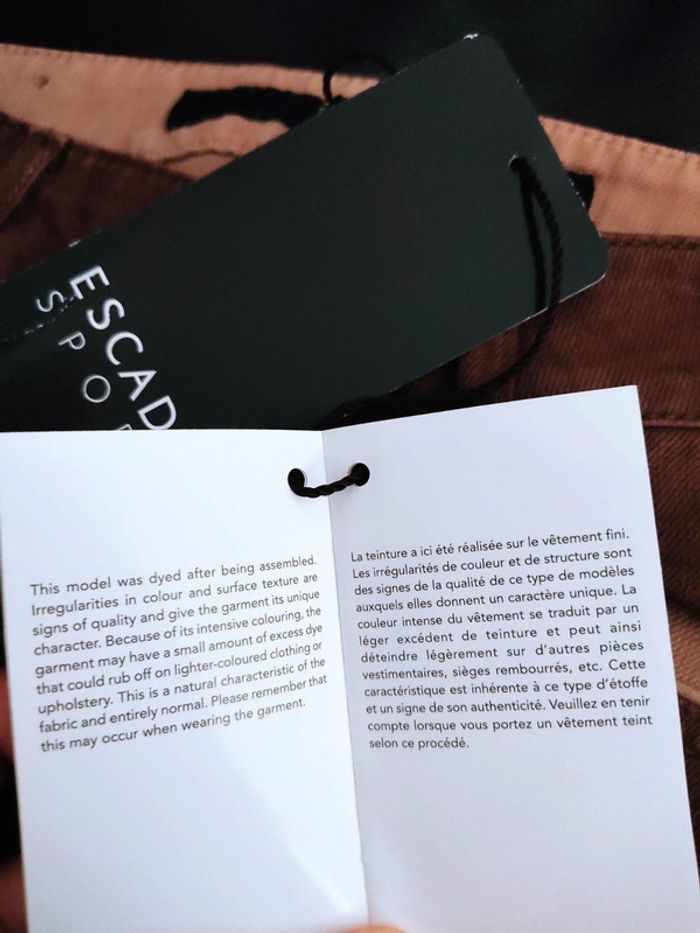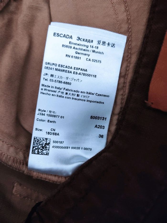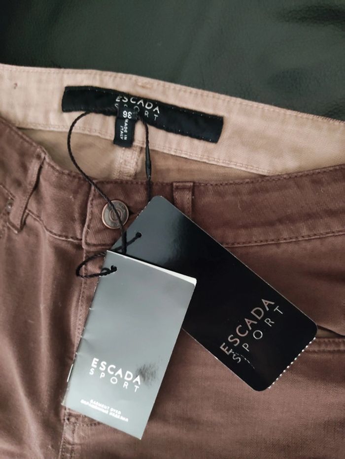 Pantalon slim Escada Sport très original aux tons marrons glacés: foncé en haut puis clair, beige, vers le bas !!😍 Taille 36/S Mesures prises à plat : - taille: 36cm - entrejambe : 87cm - longueur : 108cm Très confortable, composé principalement à 80% de coton ! Très souple avec ses 20% d'élasthane, il s'adapte aux différentes morphologies 🤗 Neuf avec étiquette. jamais porté ! Idée cadeau 🎁 #escadasport #escadasport36 #pantalonfemme36 #pantalonbicolorefemme #asline88_femme_pantalon_36