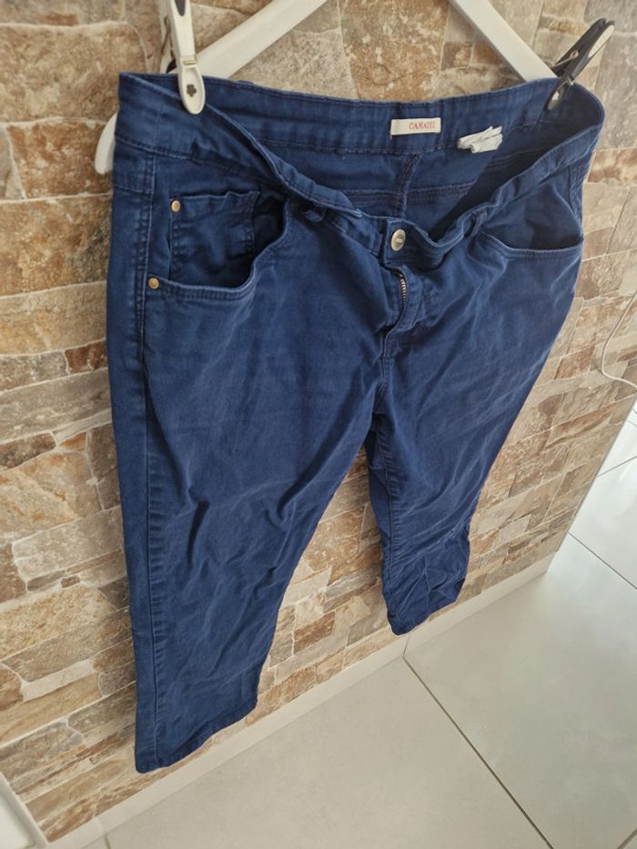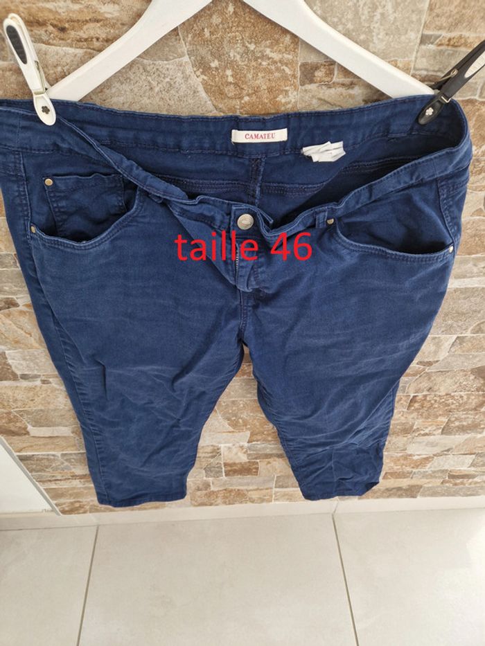 1 jean extensible bleu marine pantacourt taille 6 (sans étiquette de taille) marque camaieu langueur la taille devant 48 cm env longueur entre jambe 54 cm env #laetie69_femmesTAILLE48 #laetie69_femmesTAILLE46 #laetie69_femmesTAILLE44