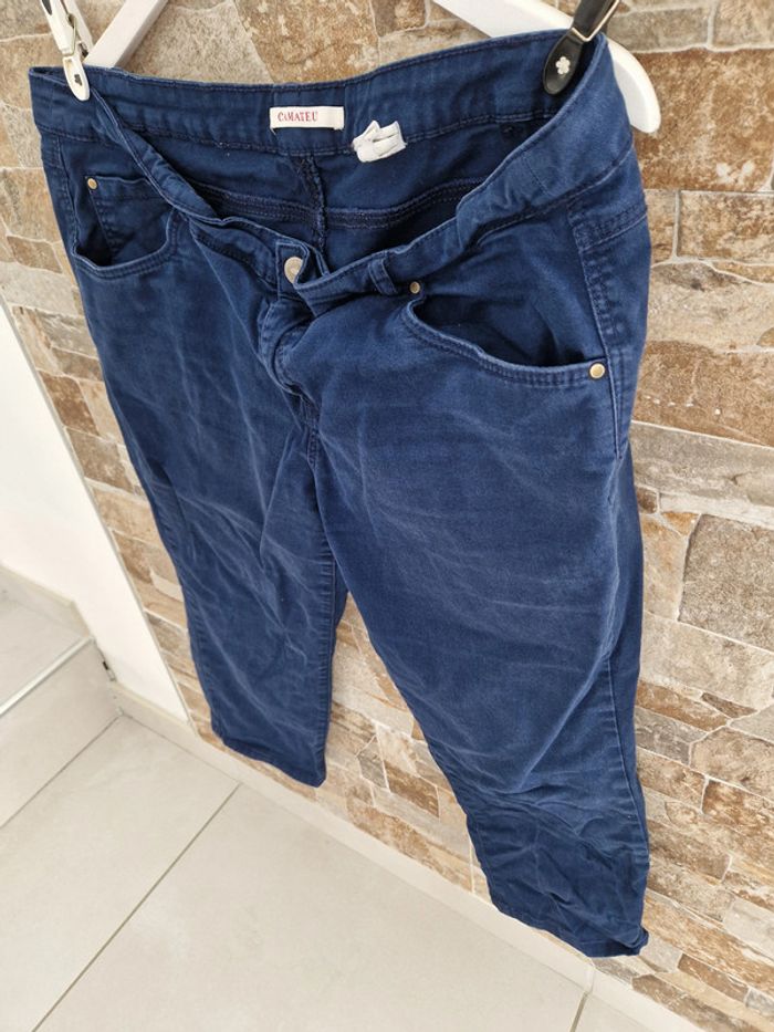 1 jean extensible bleu marine pantacourt taille 6 (sans étiquette de taille) marque camaieu - photo numéro 1