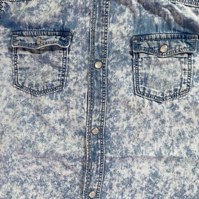 Chemise en jeans délavé sans manche Fermeture par pressions blanc nacré Taille 10 ans 140 cm 100% coton H&M Tâche légère devant sous une poche, voir photo
