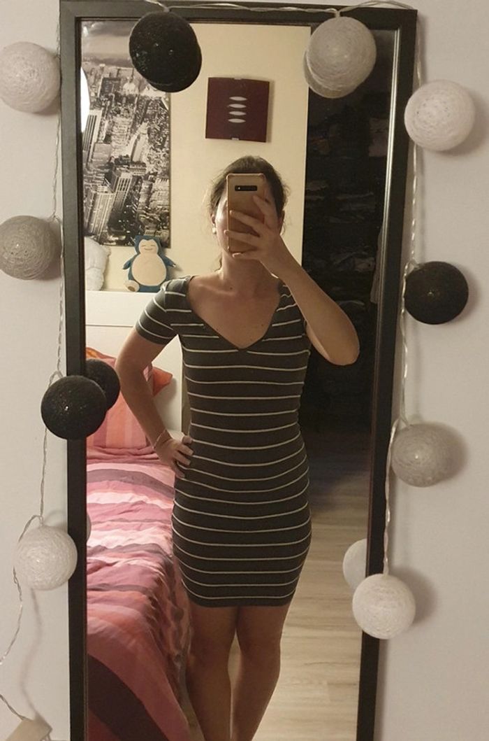 Robe moulante grise à rayures blanches H&M XS