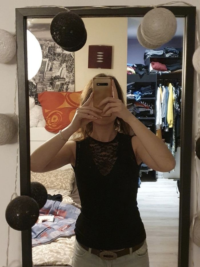 T-shirt noir brodé fleurs S - photo numéro 2