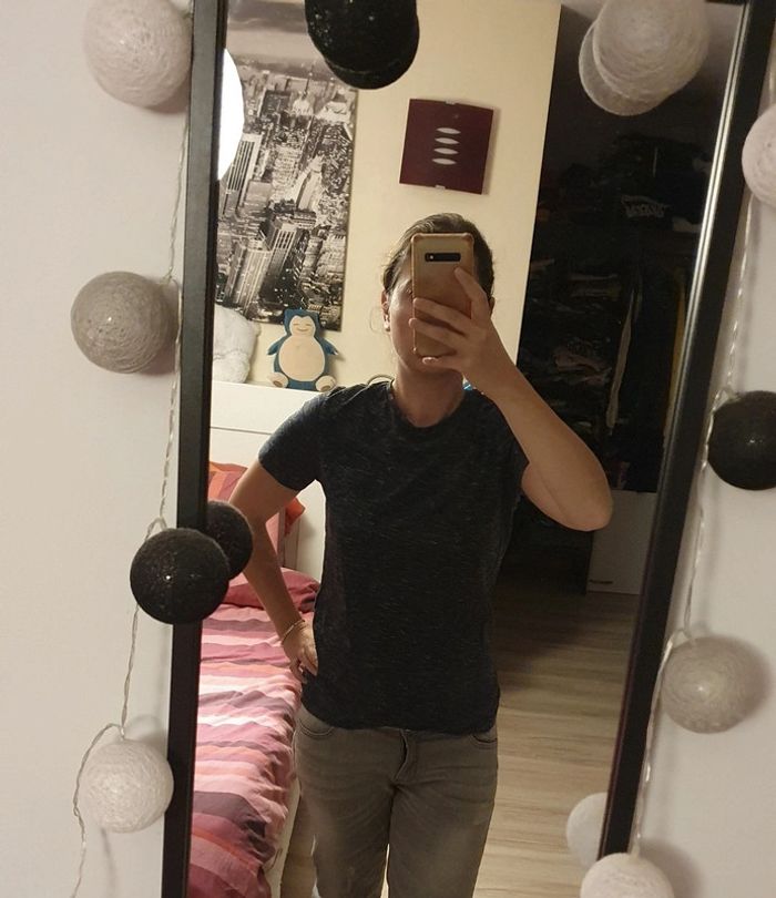 T-shirt gris à pois Kiabi S - photo numéro 1