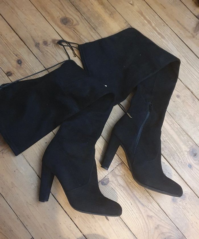 Cuissardes bottes noires à talons effet velour - photo numéro 2