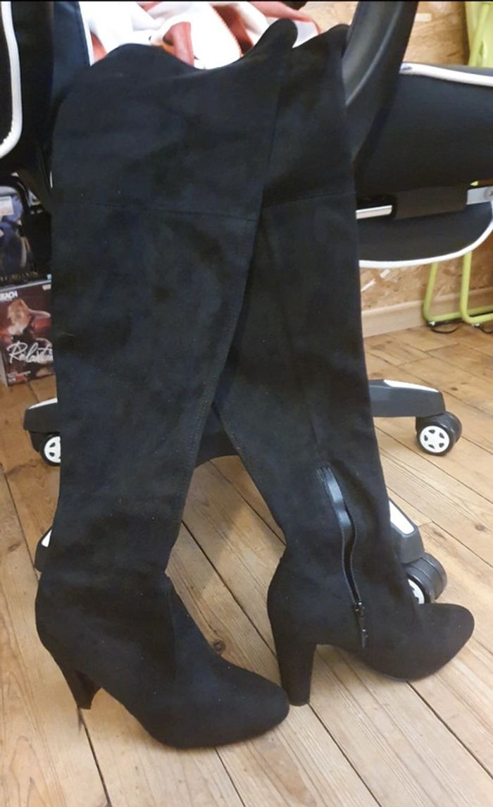 Cuissardes bottes noires à talons effet velour - photo numéro 1