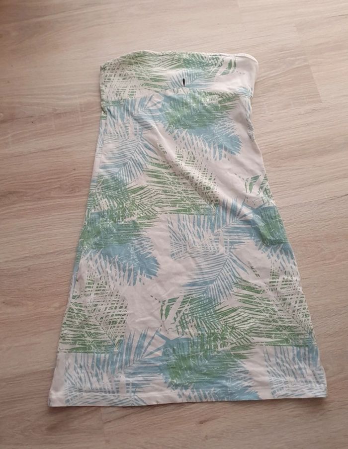 Robe moulante et courte blanche imprimée feuilles fougères