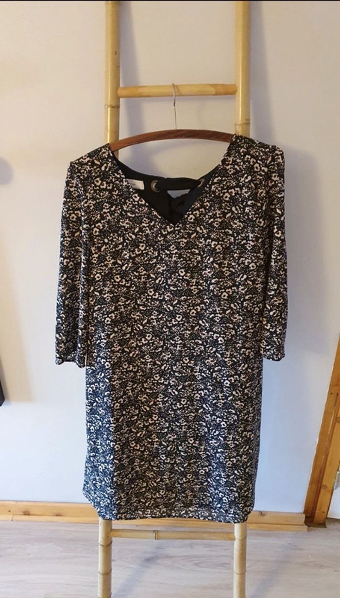 Robe imprimée fleurs avec foulard dans le dos - photo numéro 1