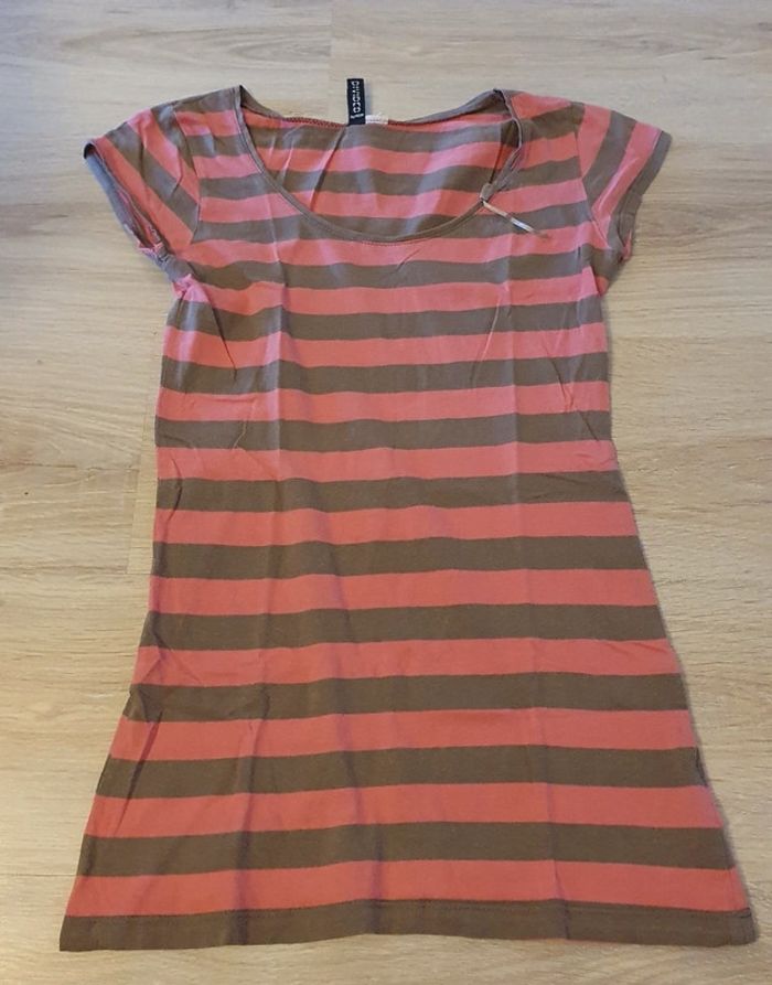Tee-shirt long rayé rose et marron H&M divided