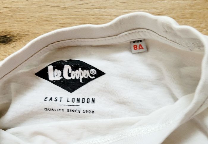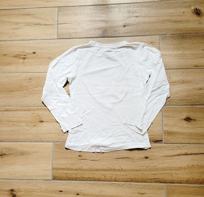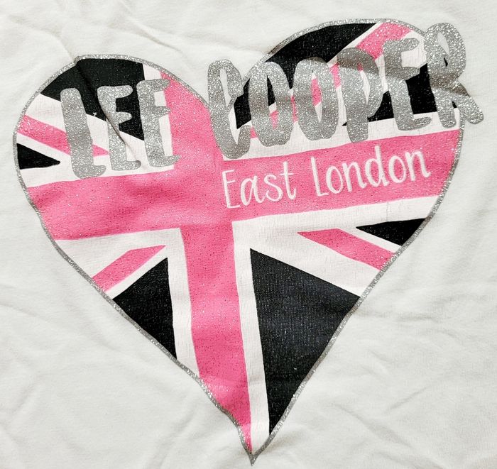 T-shirt manches longues en coton blanc avec un petit motif 🩷 thème anglais coloré pailleté sur le devant.