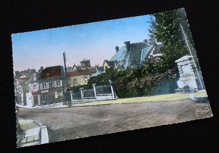 Carte postale ancienne Attigny (Ardennes) Le monument du 18è, et la rue Jean Noizet
