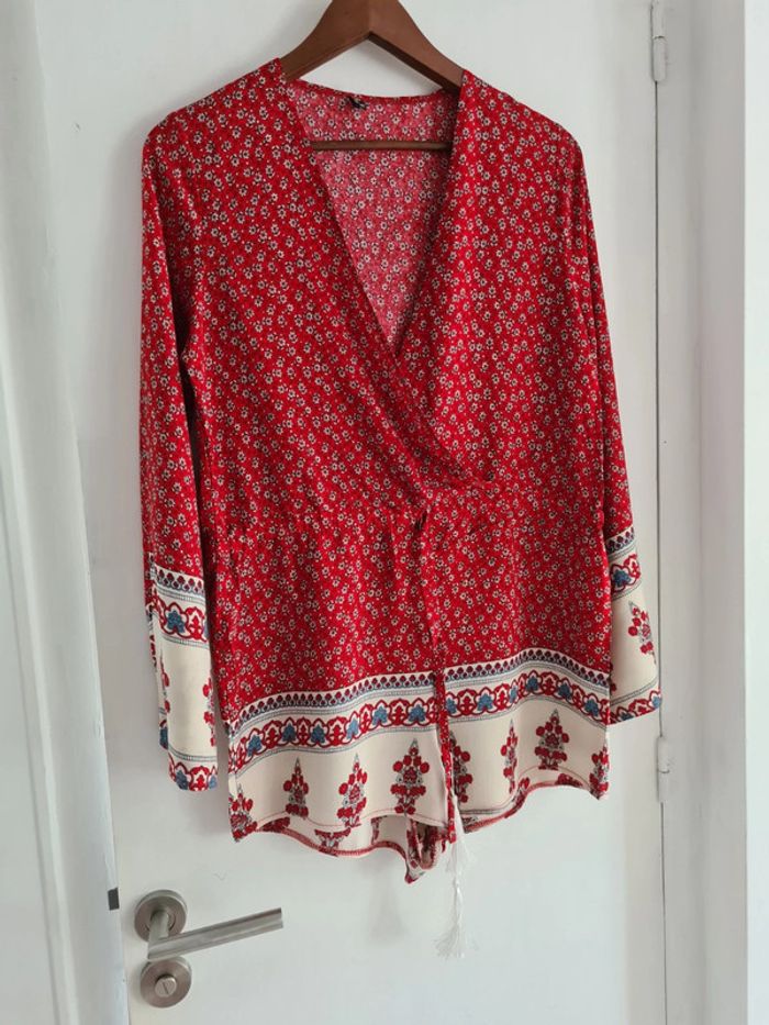 Combishort neuf Manches longues et légèrement évasées Pas de taille indiquée sur l'étiquette car taille unique mais je dirais qu'elle correspond à une taille M (possibilité de prendre les mesures si besoin) Pour retrouver toutes mes annonces vêtements femme taille 38 : #ink33160_femme_taille_M38