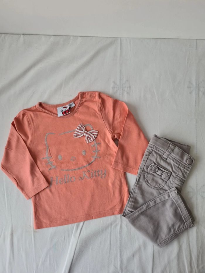Ensemble composé : - d'un haut manches longues Hello Kitty - d'un pantalon tape à l'œil (taille ajustable à la taille et fermeture par bouton pression) Pour retrouver toutes mes annonces vêtements filles 12 mois : #ink33160_fille_12mois