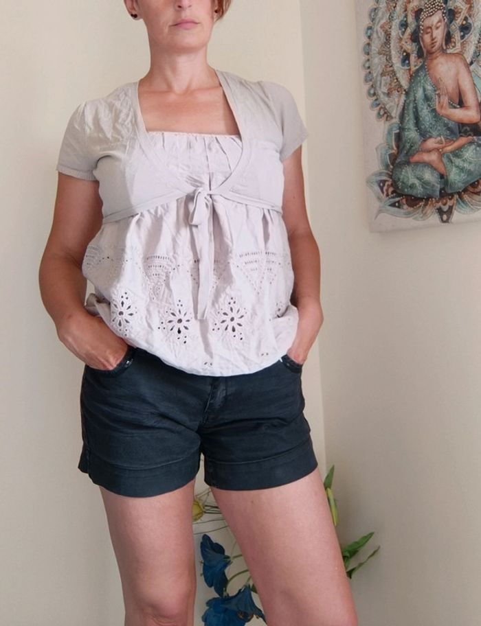 Blouse manches courtes avec empiècements Boléro - photo numéro 1
