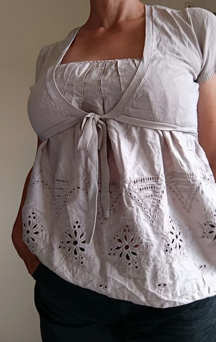 Blouse manches courtes avec empiècements Boléro . Marque 123, taille 42/44 tbe
