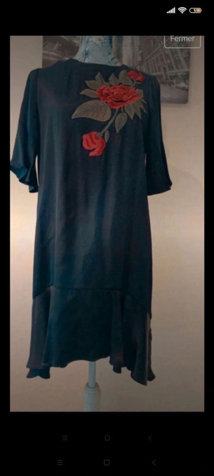 Robe chic Zara t 38 . Volanté sur les manches et le bas. Tissus effet soie . Tbe
