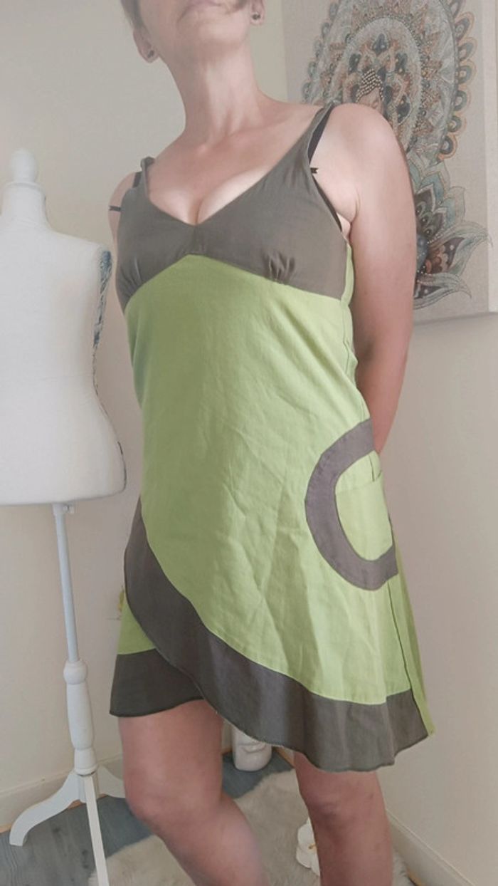 Robe d été style Desigual t 38, tbe . De couleur vertes et marron