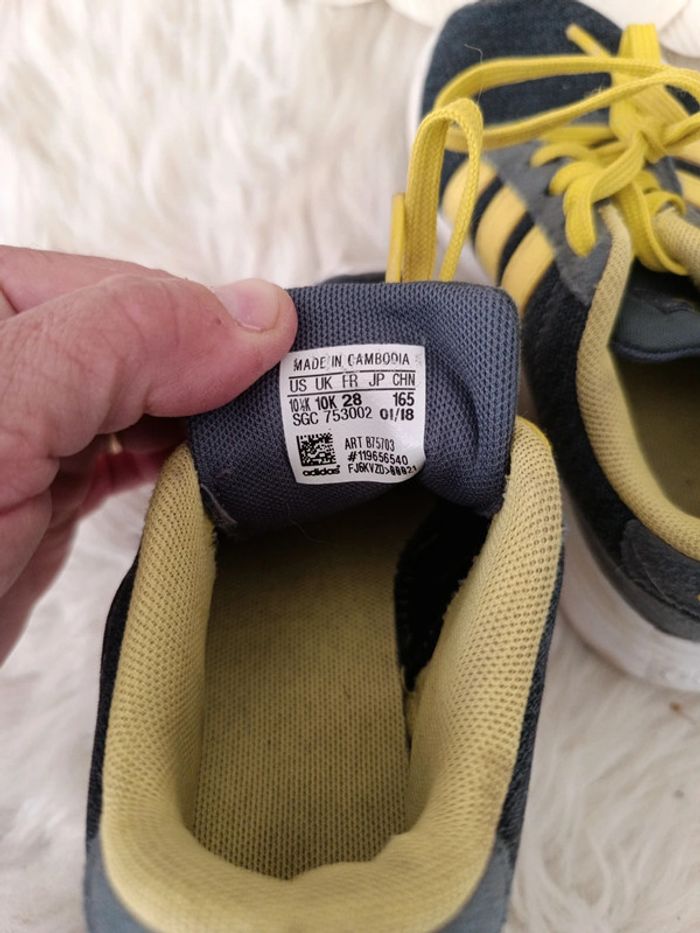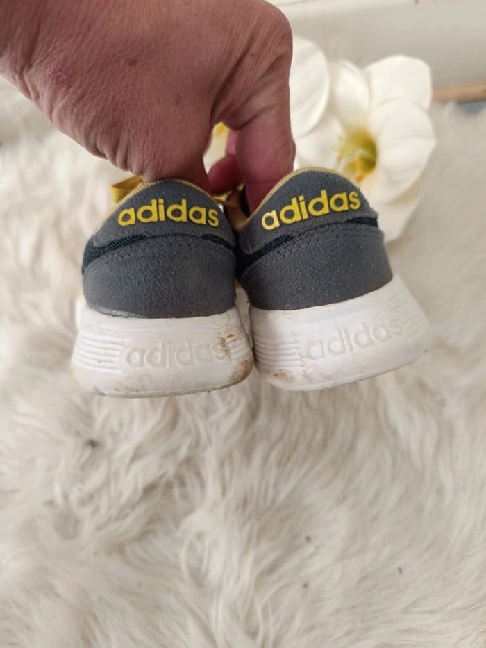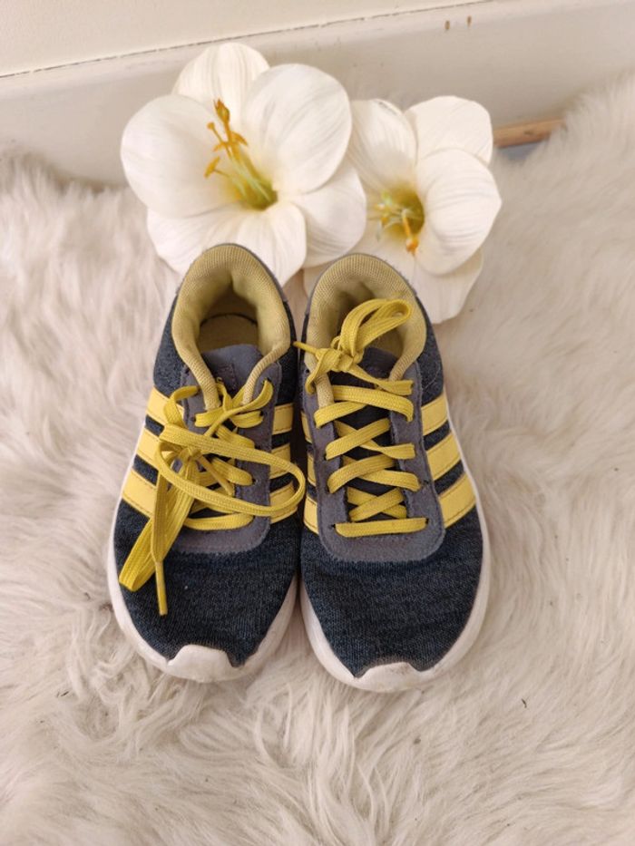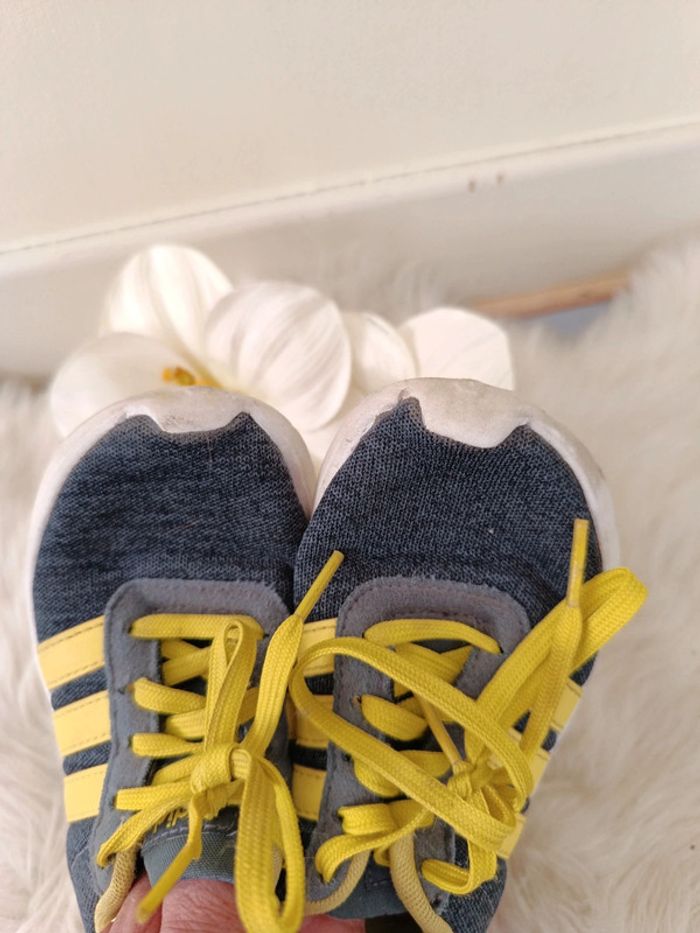 Basket à lacets, t 28, grise et jaune, tbe juste le devant qui est un tout petit peu égratigné voir photo