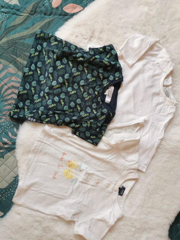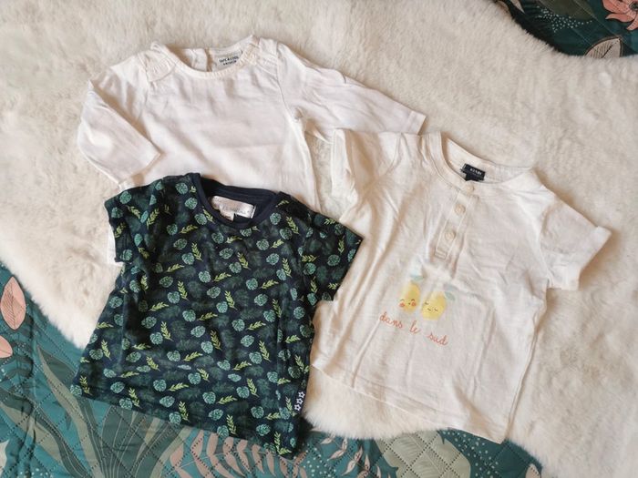 2 t-shirts manches courtes Kiabi et Mes Petits Cailloux Un t-shirt manches longues TAO Taille 6 mois #chadvrchy6mois