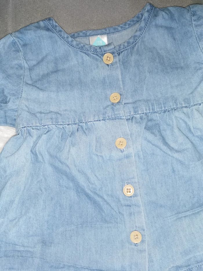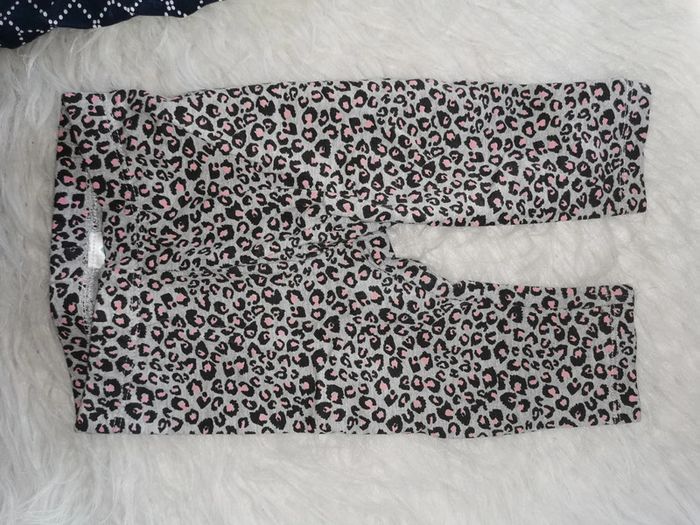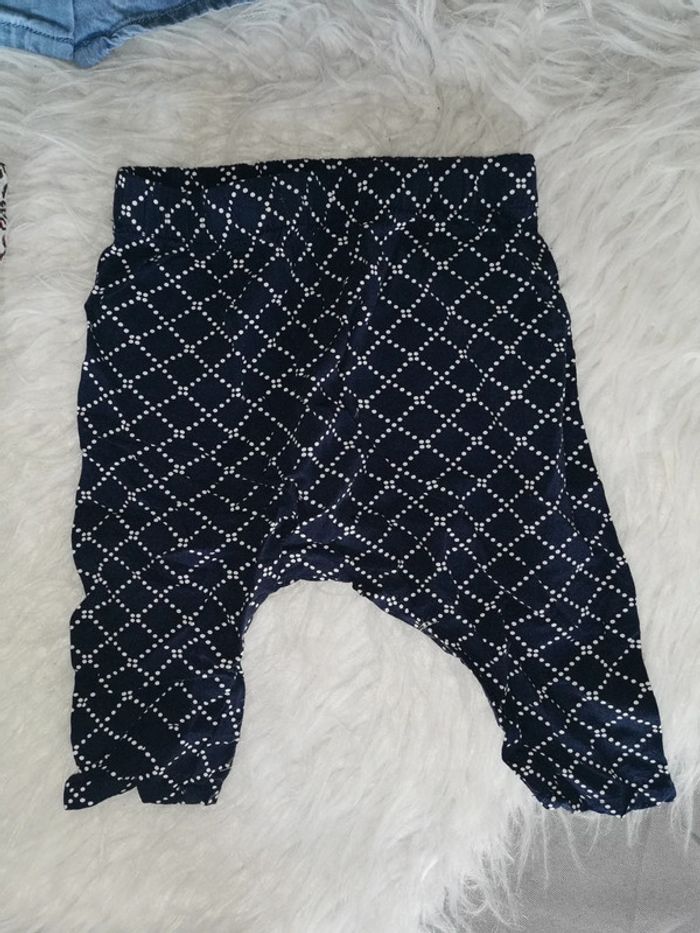 1 blouse en jean boutonnée sur le devant, un legging léopard et un sarouel fin bleu marine à motifs. Legging et blouse Tex Sarouel Kiabi Taille 6 mois #chadvrchy6mois