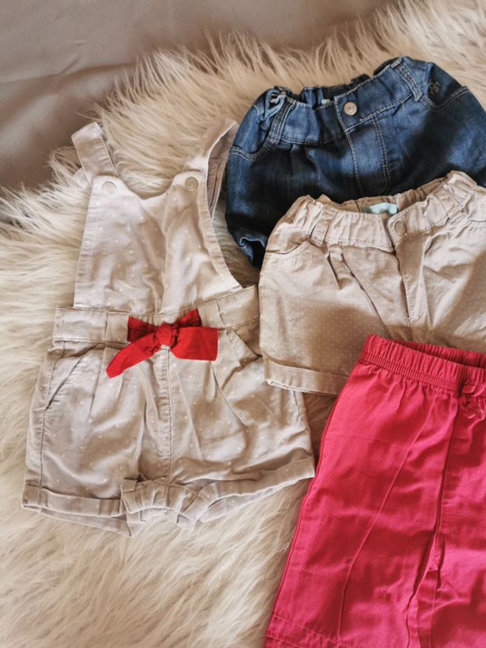Composé d'une salopette short Obaibi 2 shorts qui se règlent à la taille avec des élastiques Obaibi également Et un petit pantalon rose fin avec taille élastique Taille 3 mois #chadvrchy3mois