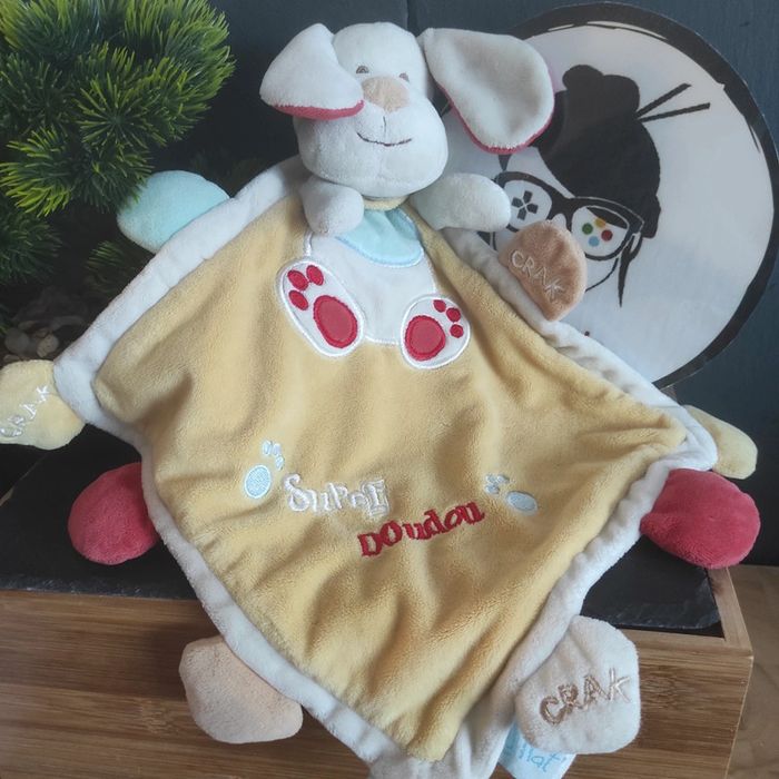 Doudou plat chien jaune Super Doudou Baby nat bn302 bleu orange blanc Empreintes - photo numéro 1