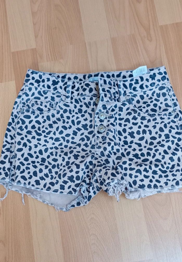 Short motif léopard en jean's Look mode déchiré Épais, grand,, Porté 1 fois