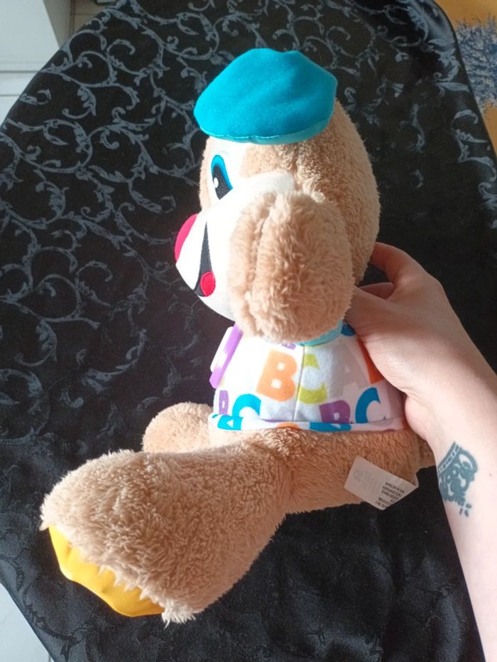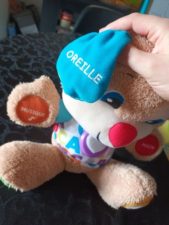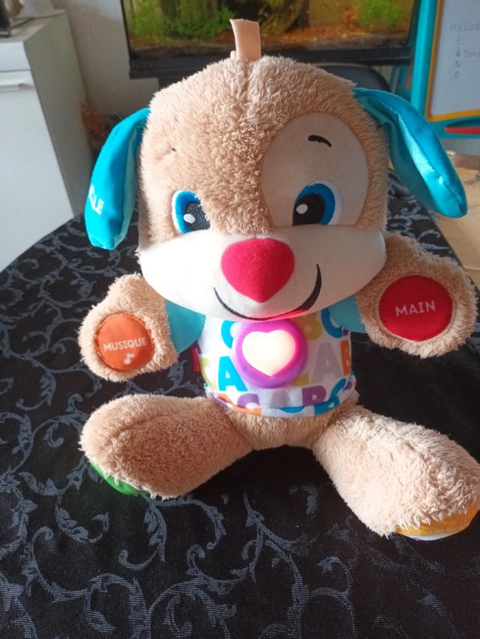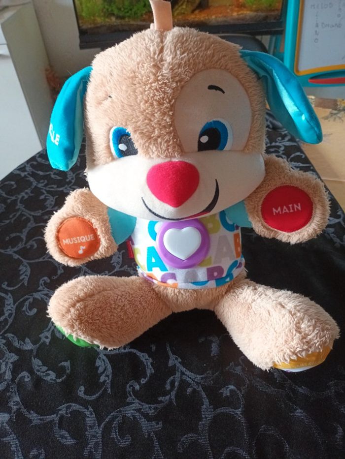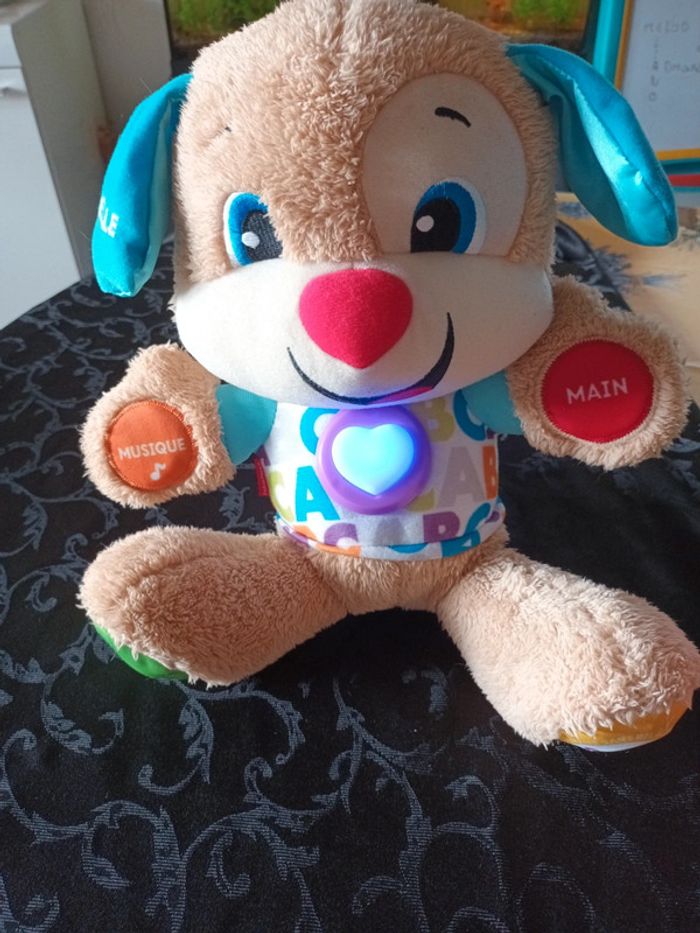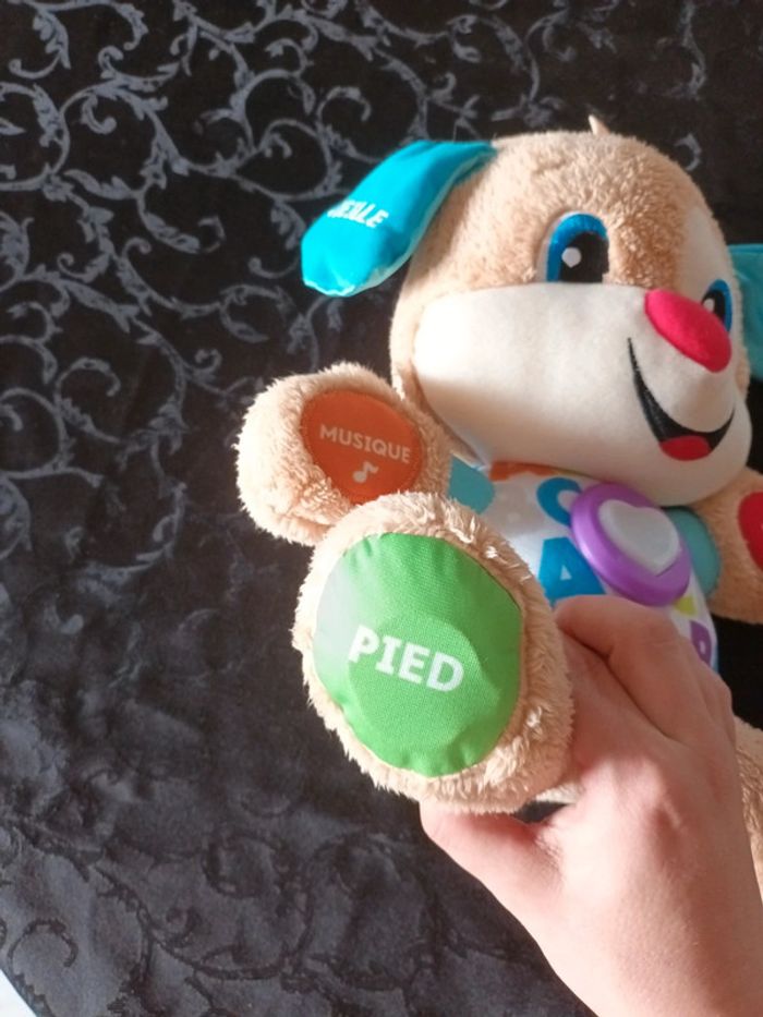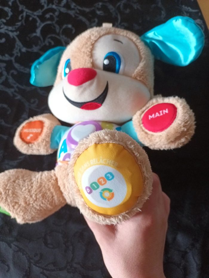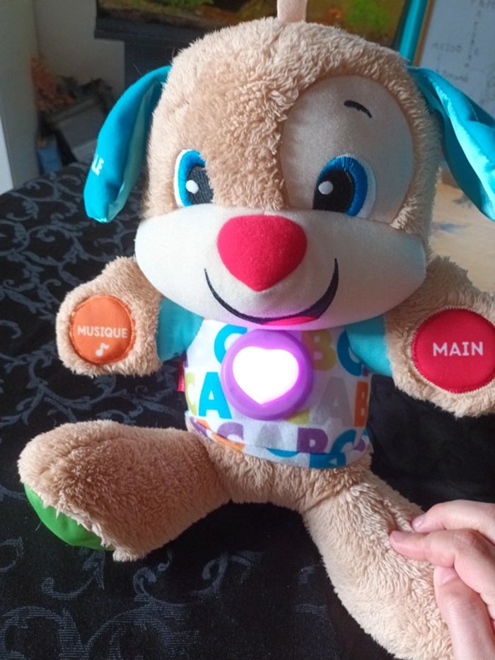 ​Plus de 75 sons, chansons, mélodies et expressions en français. Vendu 30€ a auchan La main, le pied, l’oreille et le cœur lumineux de Puppy réagissent au toucher de bébé (6 points d’activation en tout !) Apprend à bébé 100 premiers mots et l’initie aux parties du corps humain, à l’alphabet, aux couleurs, au calcul et plus encore 3 niveaux d’Éveil Progressif pour évoluer avec votre enfant, aide à développer les sens de bébé ainsi que sa motricité fine Appuyez sur le cœur lumineux de Puppy pour écouter toutes ses chansons Piles fournies, en excellent état (très peu servi) #ladyscreamjouet