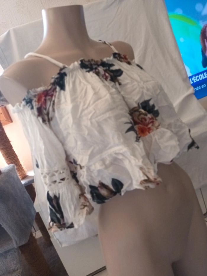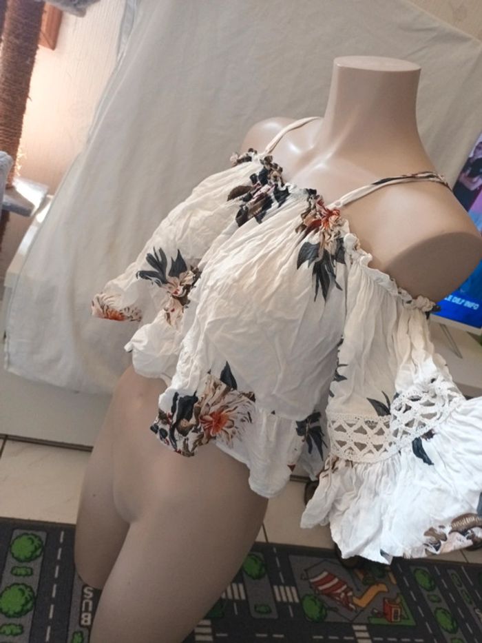 Haut épaule dénudé fluide Tres bon etat léger, pas de taille indiqué car tout est élastique #ladyscream34 #ladyscream36