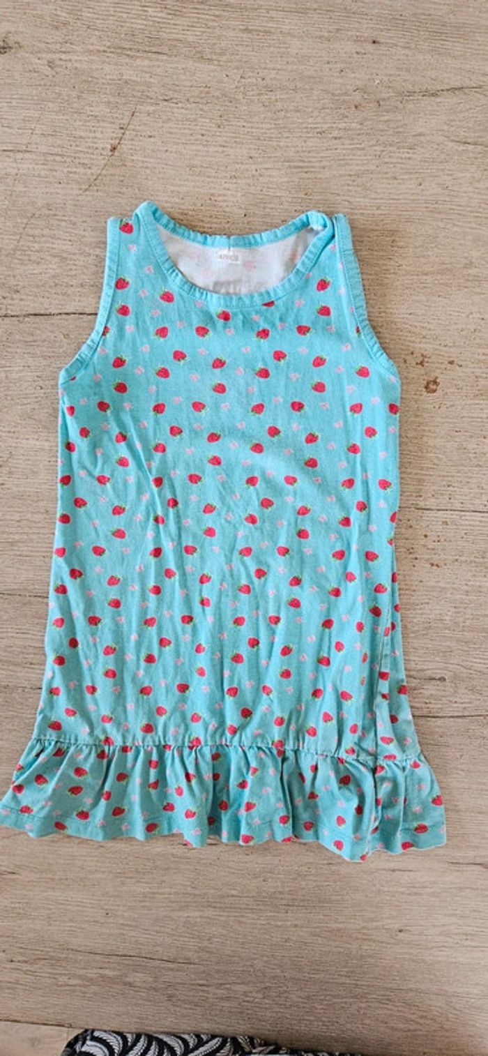 Robe coute turquoise avec des fraises, taille 7/8 mais petite - photo numéro 4