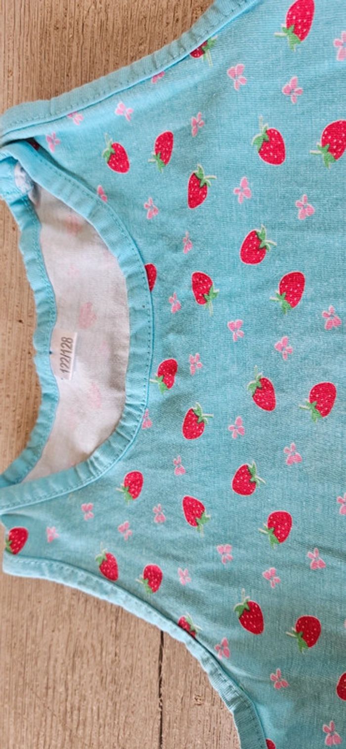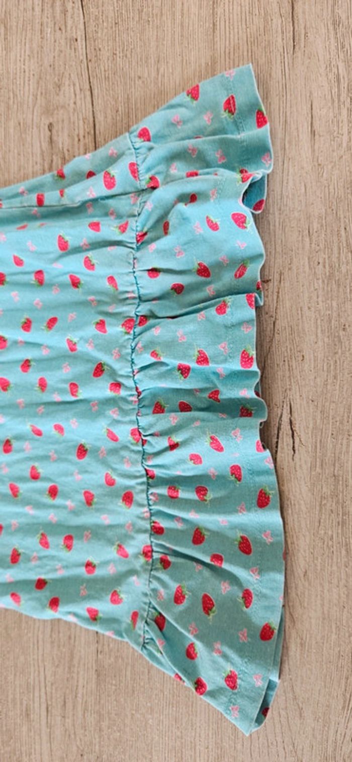 Robe coute turquoise avec des fraises, taille 7/8 mais petite - photo numéro 5