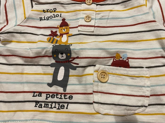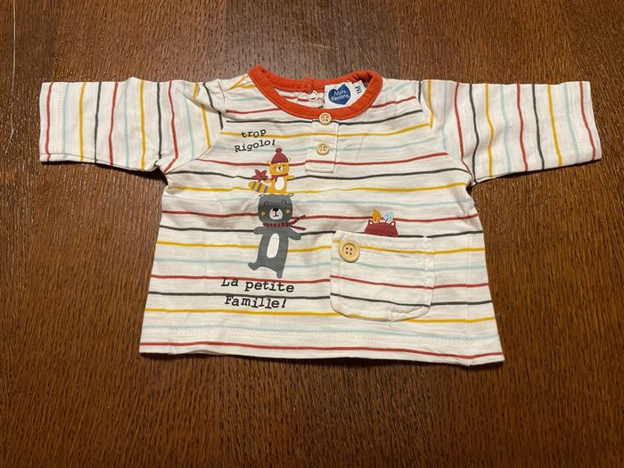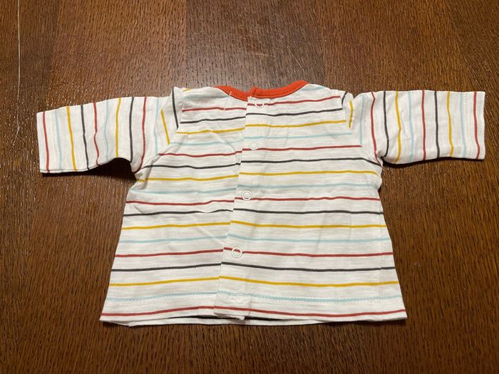 T-shirt manches longues Rayé motif animaux Taille 1 mois Marque Mots d’enfants Ouverture dans le dos par pressions Très peu porté